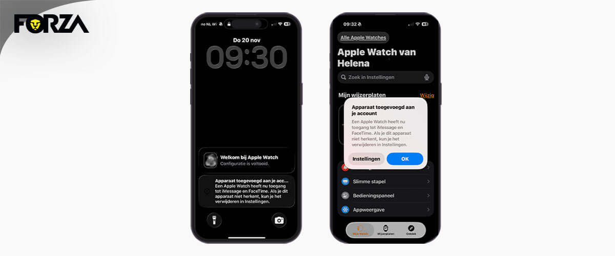 - Op je iPhone een melding dat de Watch is toegevoegd aan je account.