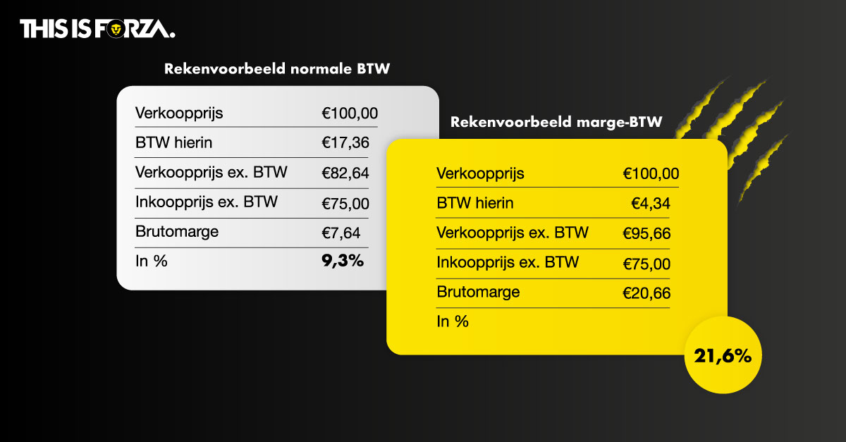 * Let op: er is veel fraude rondom marge-BTW, doe dit dus alleen in samenwerking met Forza! Dan weet je zeker dat je goed zit.